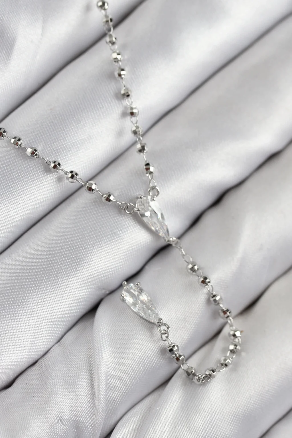 Pirinç Zirkon Taşlı Gümüş Renk Kadın Y Kolye