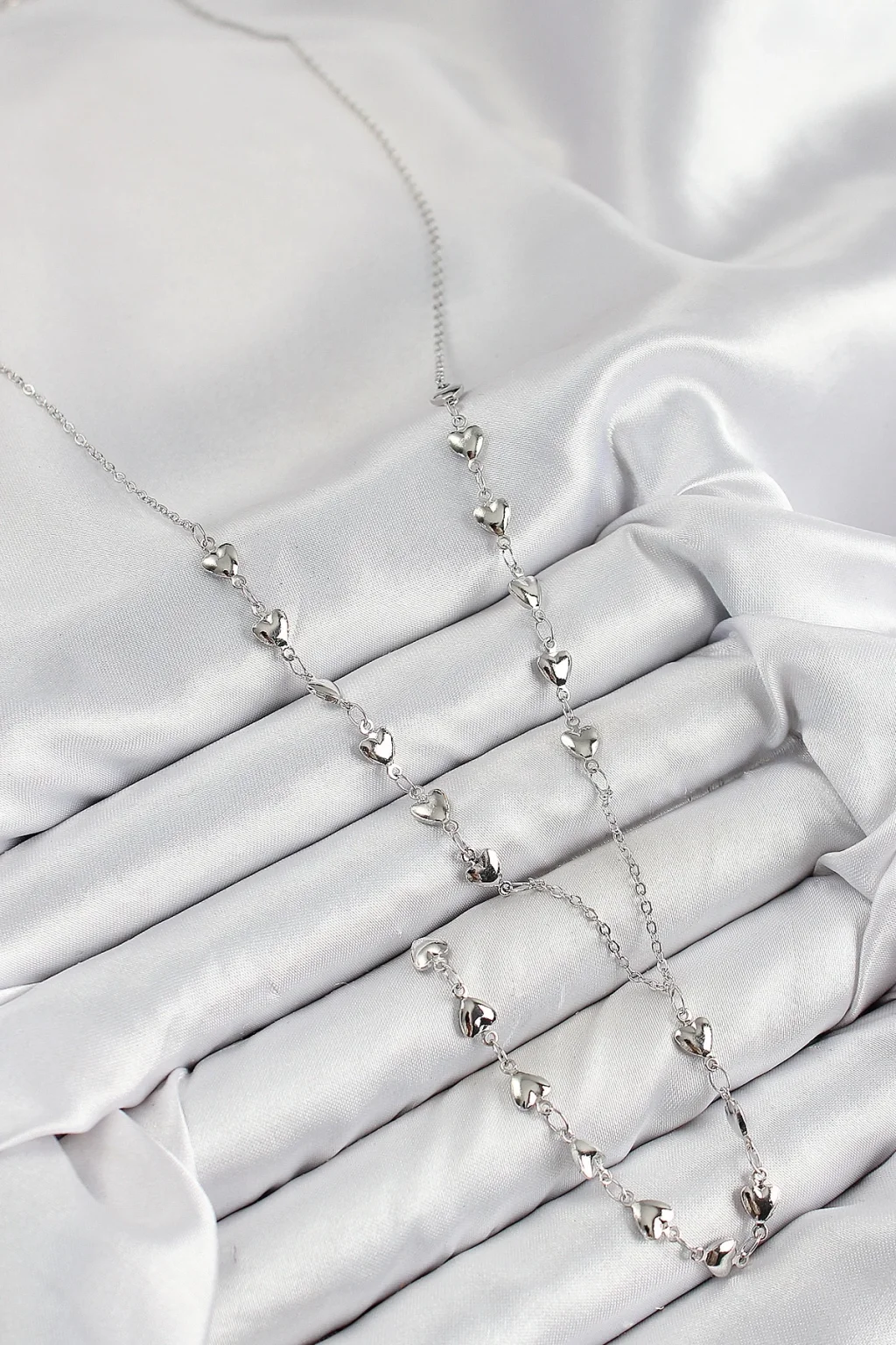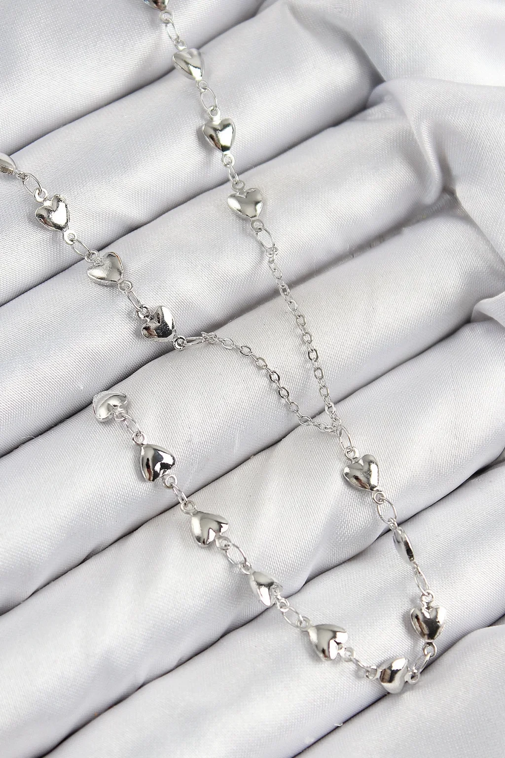 Pirinç Zirkon Taşlı Kalp Model Gümüş Renk Y Kolye