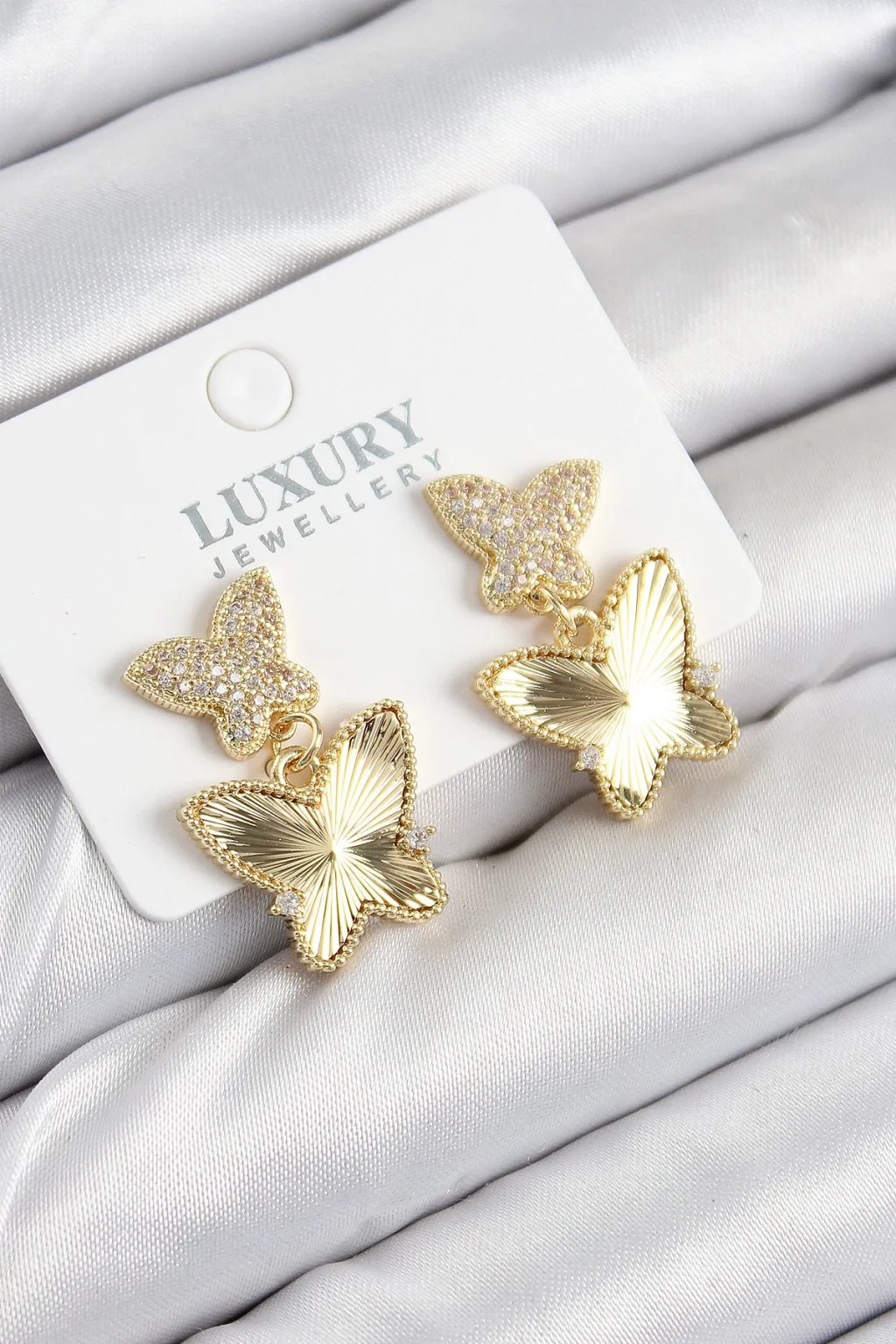 Pirinç Zirkon Taşlı Kelebek Model Gold Renk Kadın Küpe