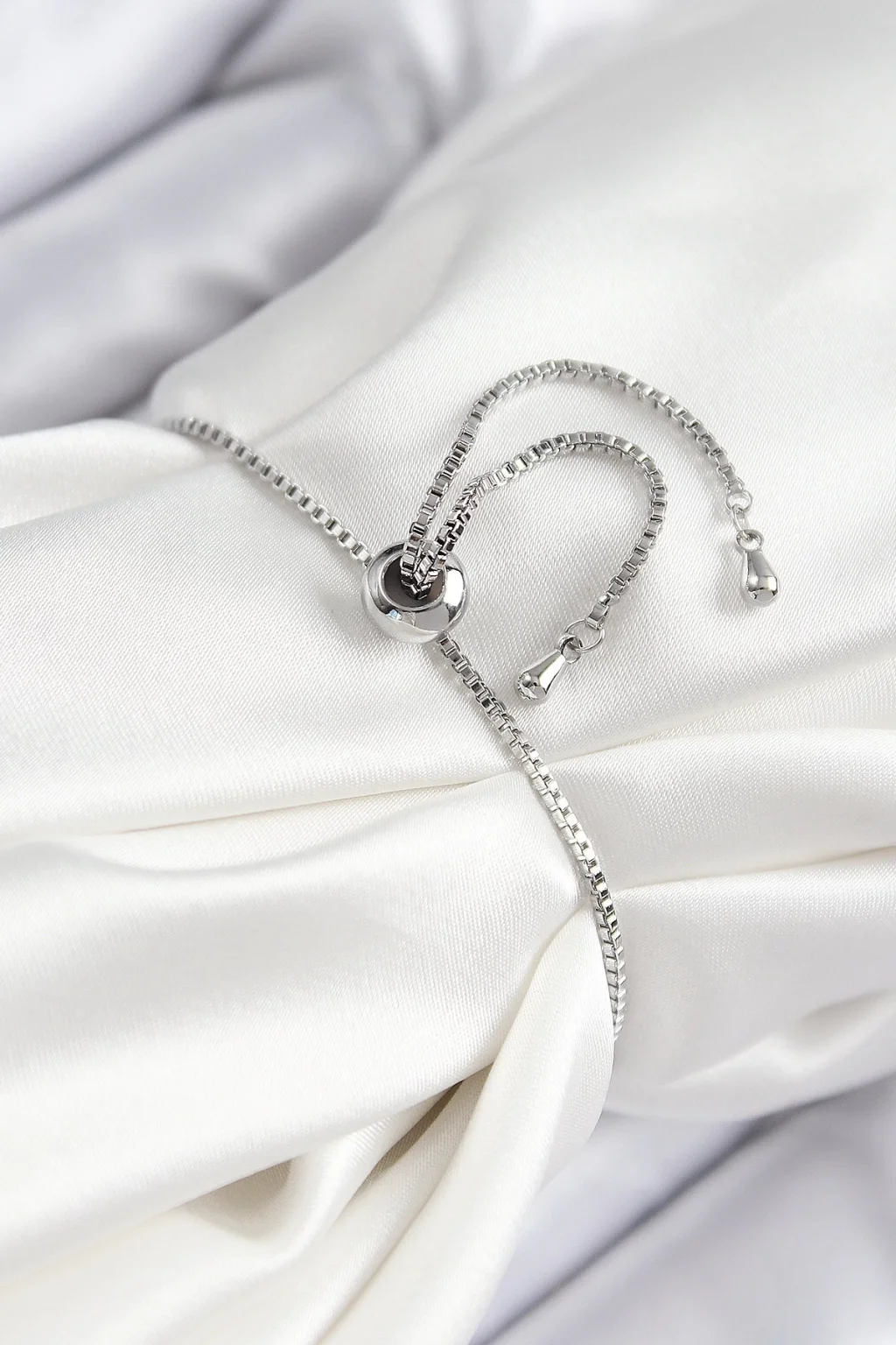 Pirinç Zirkon Taşlı Kiraz Model Gümüş Renk Asansörlü Kadın Bileklik