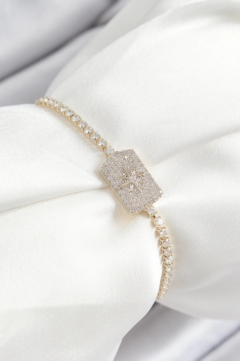 Pirinç Zirkon Taşlı Kutup Yıldızı Model Gold Renk Asansörlü Kadın Bileklik