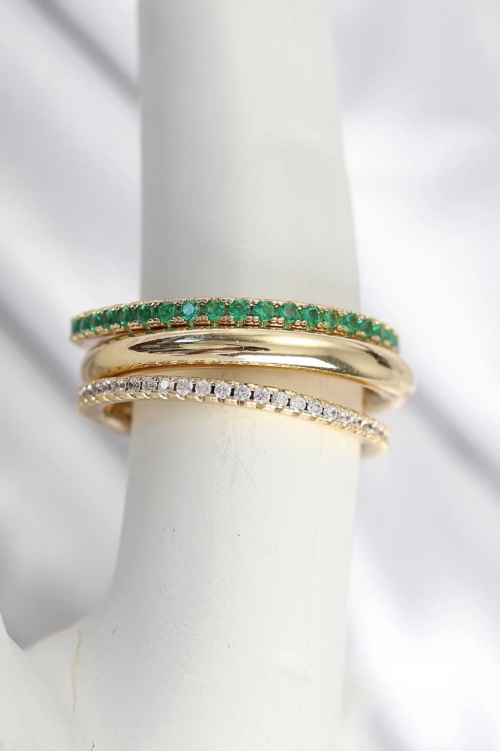 Pirinç Zirkon Taşlı Mix Renk 3'Lü Kadın Yüzük