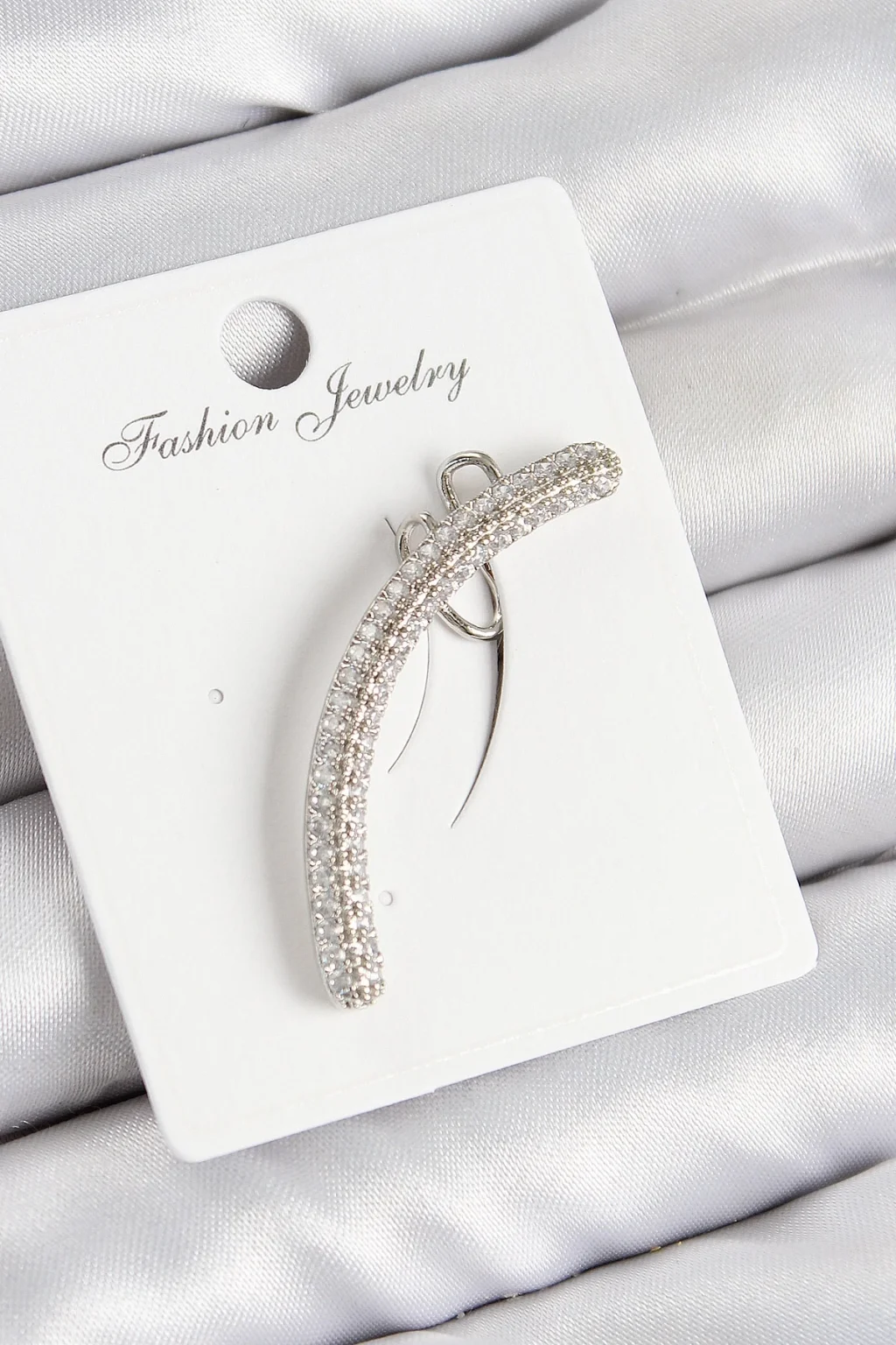 Pirinç Zirkon Taşlı Model Gümüş Renk Sağ Kıkırdak Küpe