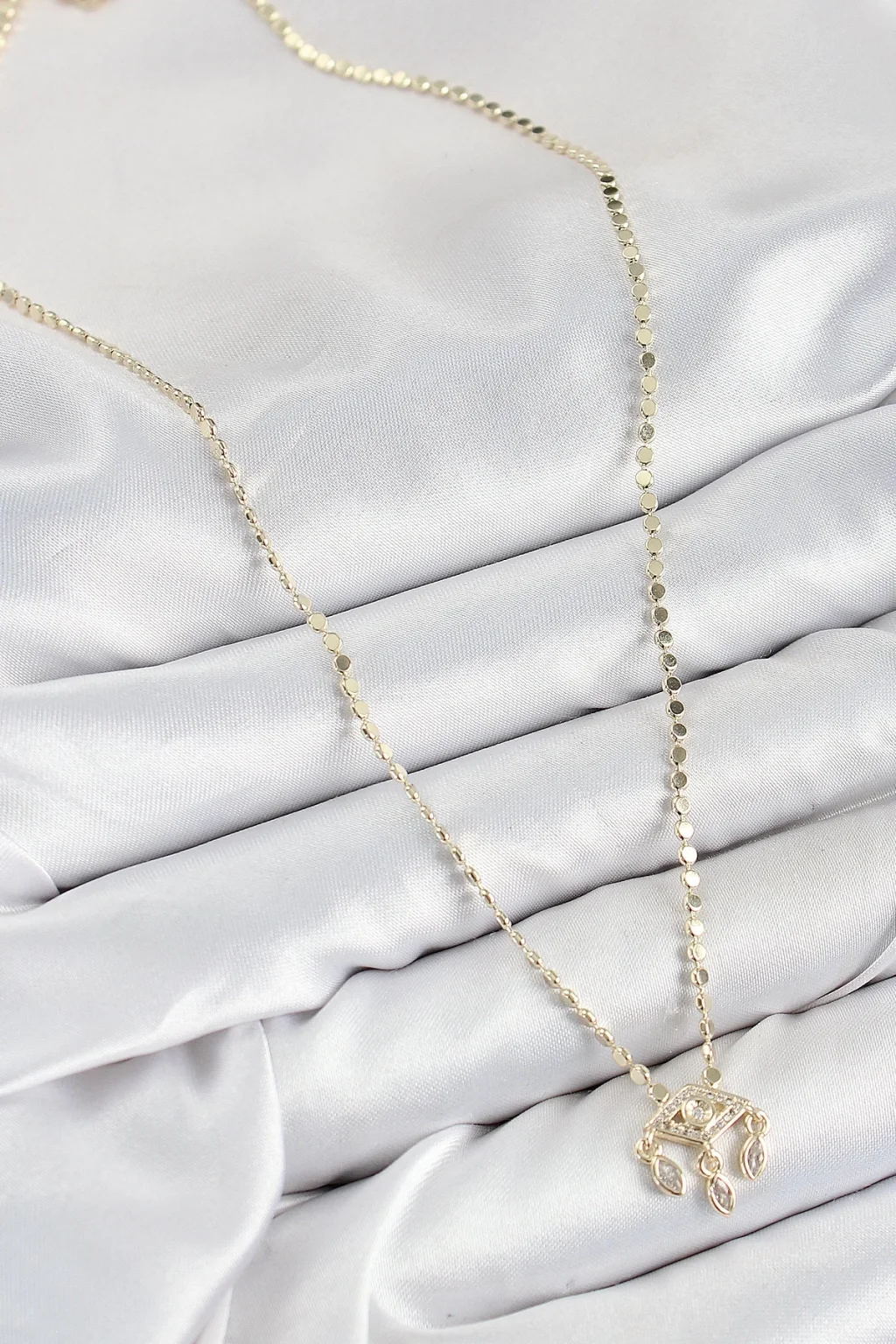 Pirinç Zirkon Taşlı Sallantılı Göz Model Ezme Zincir Gold Renk Kadın Kolye