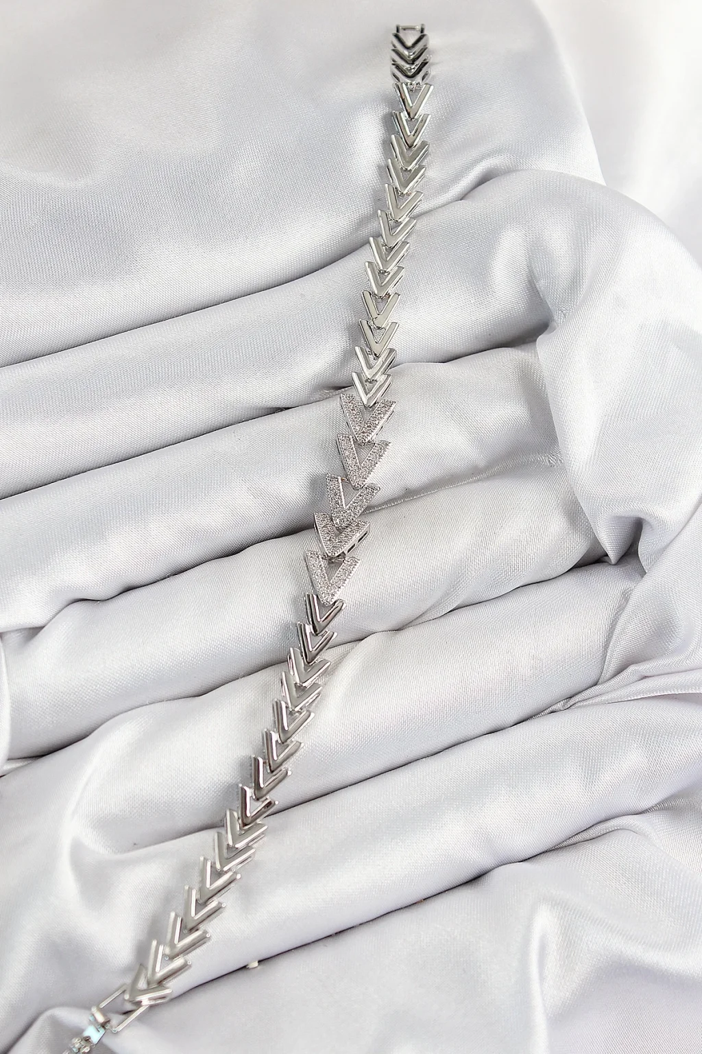 Pirinç Zirkon Taşlı Sıralı Ok Model Gümüş Renk Kadın Bileklik