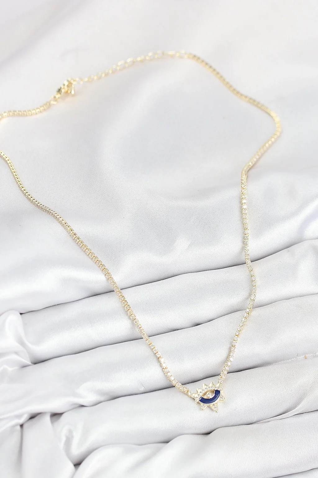 Pirinç Zirkon Taşlı Su Yolu Göz Model Gold Renk Kadın Kolye