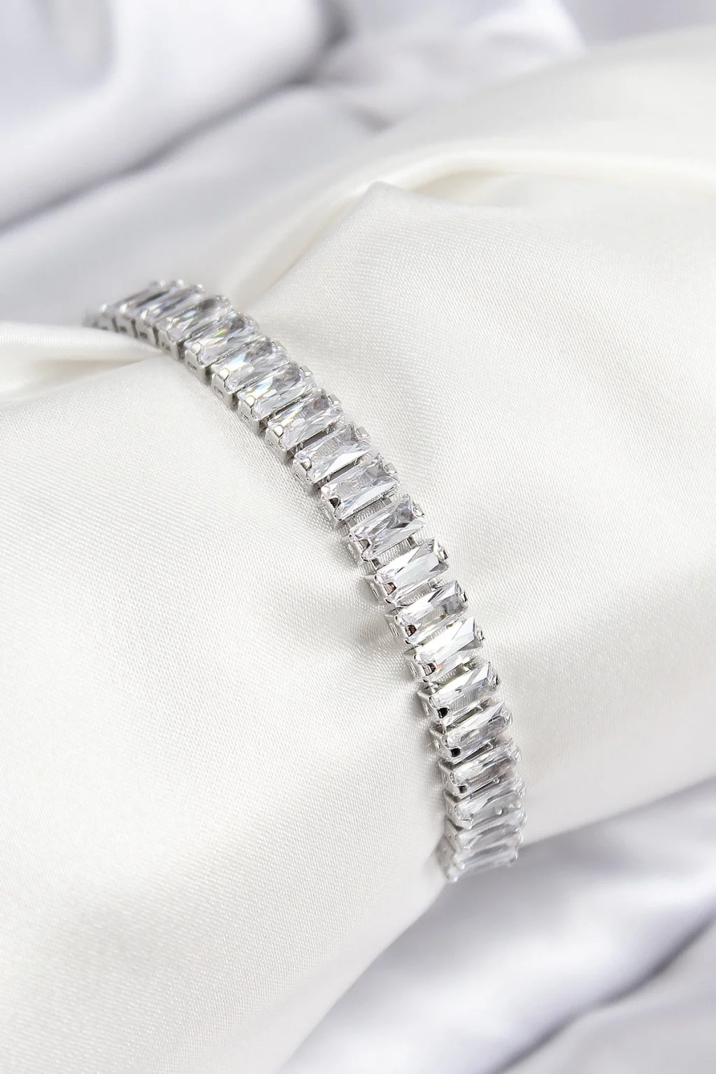 Pirinç Zirkon Taşlı Su Yolu Model Gümüş Renk Asansörlü Kadın Bileklik