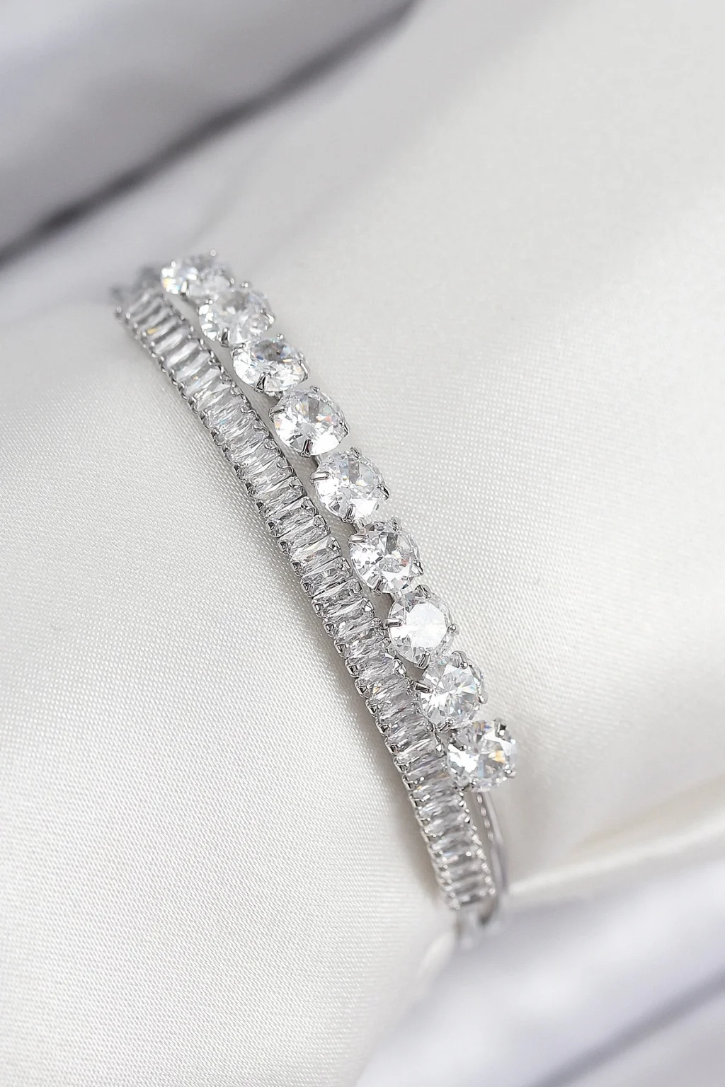 Pirinç Zirkon Taşlı Su Yolu Model Gümüş Renk Kadın Bileklik