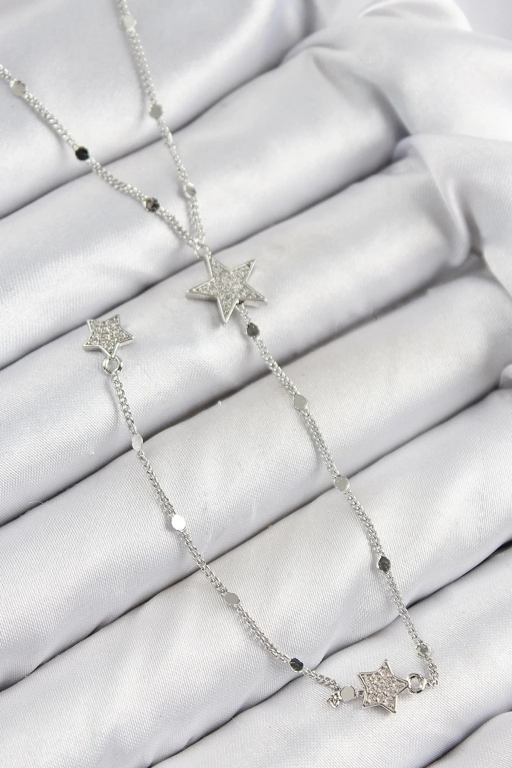 Pirinç Zirkon Taşlı Yıldız Model Gold Renk Y Kolye