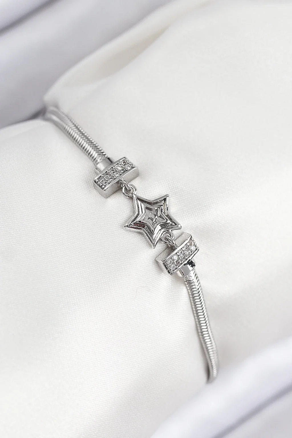 Pirinç Zirkon Taşlı Yıldız Model Gümüş Renk Kadın Bileklik