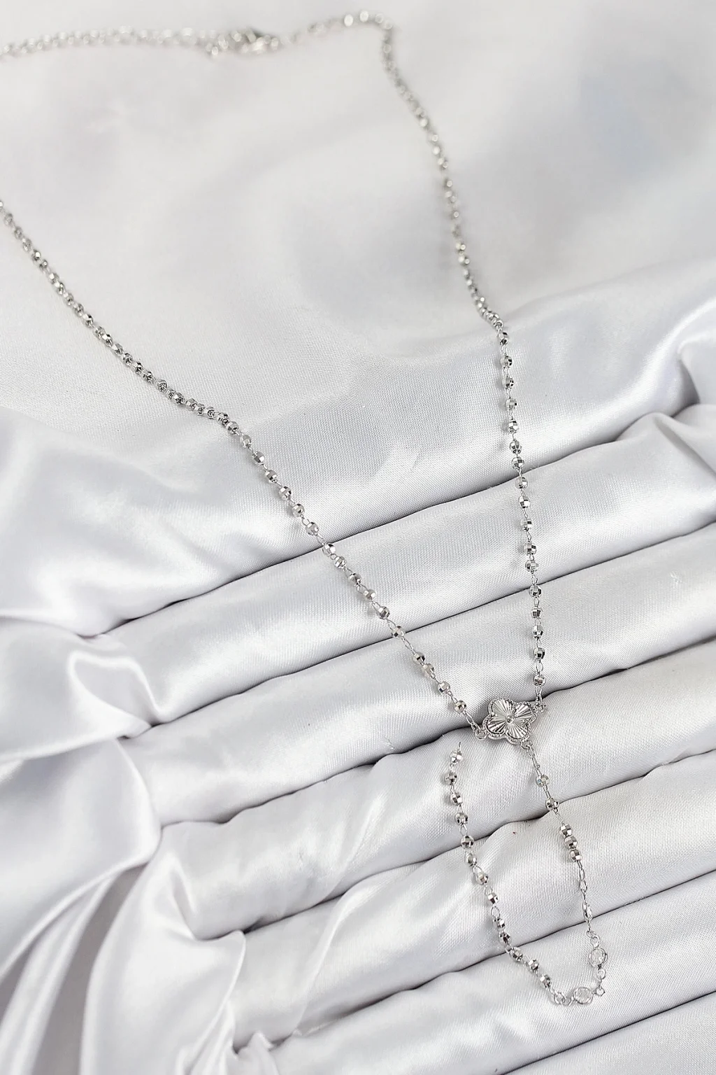 Pirinç Zirkon Taşlı Yonca Model Gümüş Renk Kadın Y Kolye