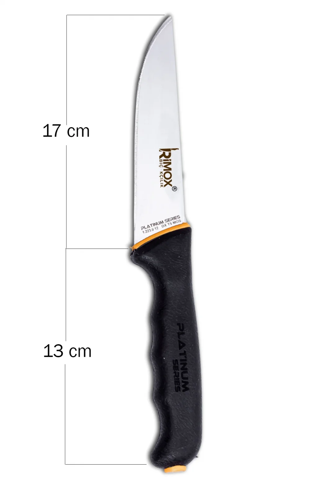 | Platinium Serisi Kasap ve Ev Mutfak Bıçağı Çelik Kasap No:2 Platinium Series Kasap No: 2 BIÇAK AĞIZ BOYU: 17 cm SAP BOY:13 cm -Platinium Bıçaklarımız T5 Fransız/Alman Çubuk Çeliğinden üretildi. Kauçuk ve Termo plastik alaşımlı sapı sayesinde |