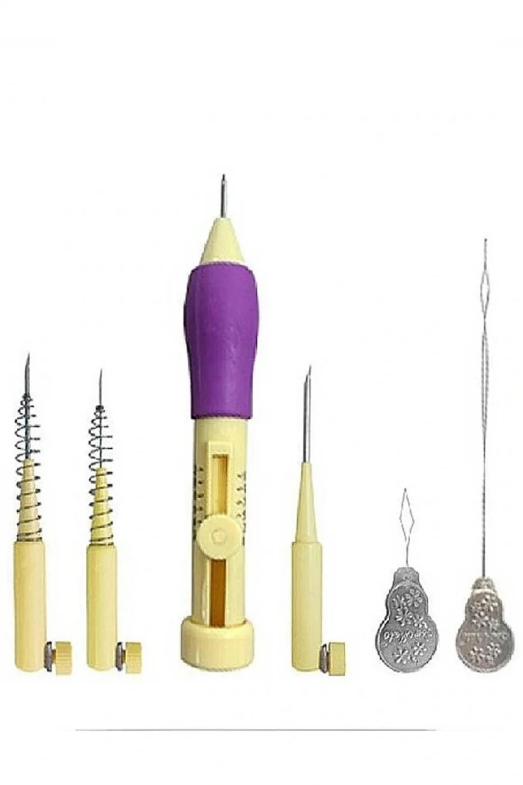 | Nazarone Punch İğne Seti Punch nakışı yapımında kullanılan iğne seti. Punch nakışı yapımında kullanılan kaliteli iğne seti. Set içeriğindeki ürünler 3 adet herbiri farklı kalınlıkta iğne 1 adet iğnelerin takıldığı makine 2 adet uzun iplik geçirici Set içeriğindeki ürünler 3 adet herbiri farklı kalınlıkta iğne1 adet iğnelerin takıldığı makine 2 adet uzun iplik geçirici |
