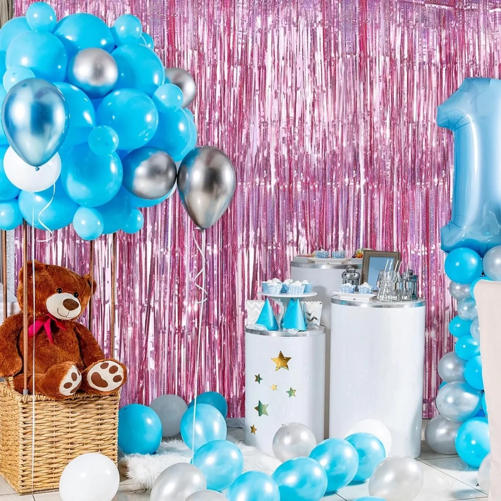 Rose Gold Renk Ekstra Metalize Parlak Saçaklı Arka Fon Perde İthal A Kalite 1x2 Metre