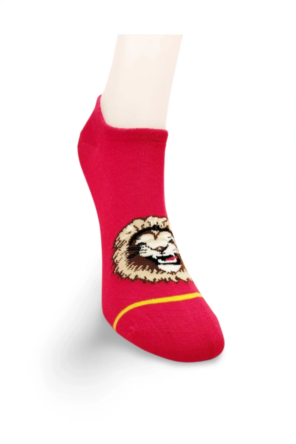 Sarı Kırmızı Aslan Desenli Sportif Unisex  Kısa Bilek Çorap Yazlık 1 Çift