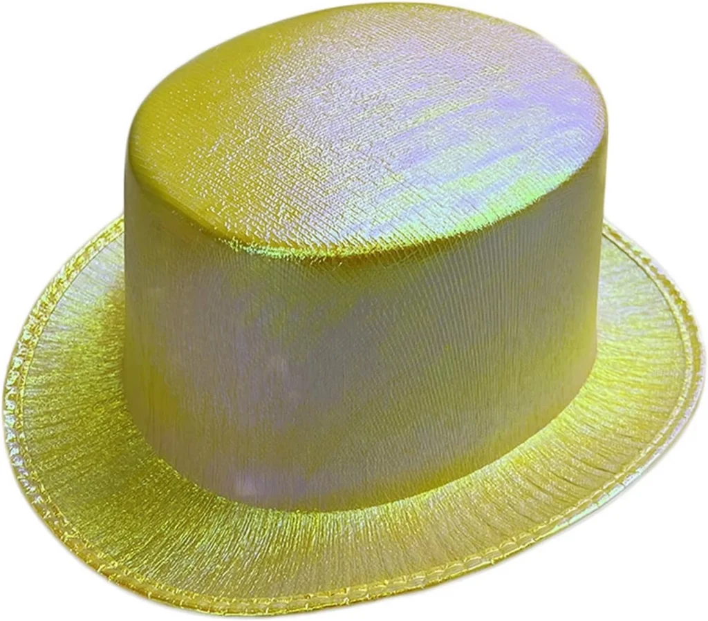 Sarı Renk Işıltılı Hologram Kumaş Kaplama Fötr Silindir Şapka Yetişkin Boy