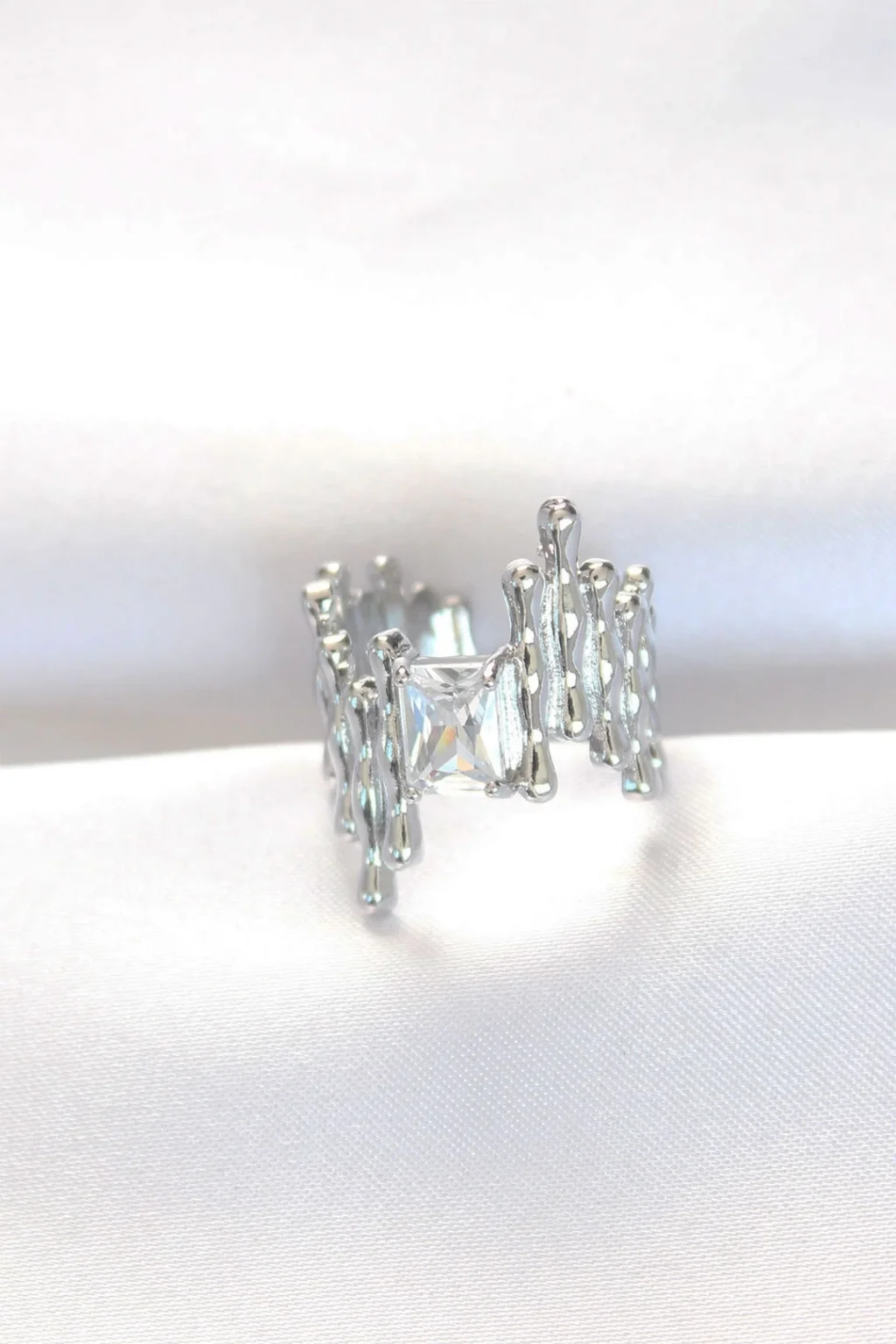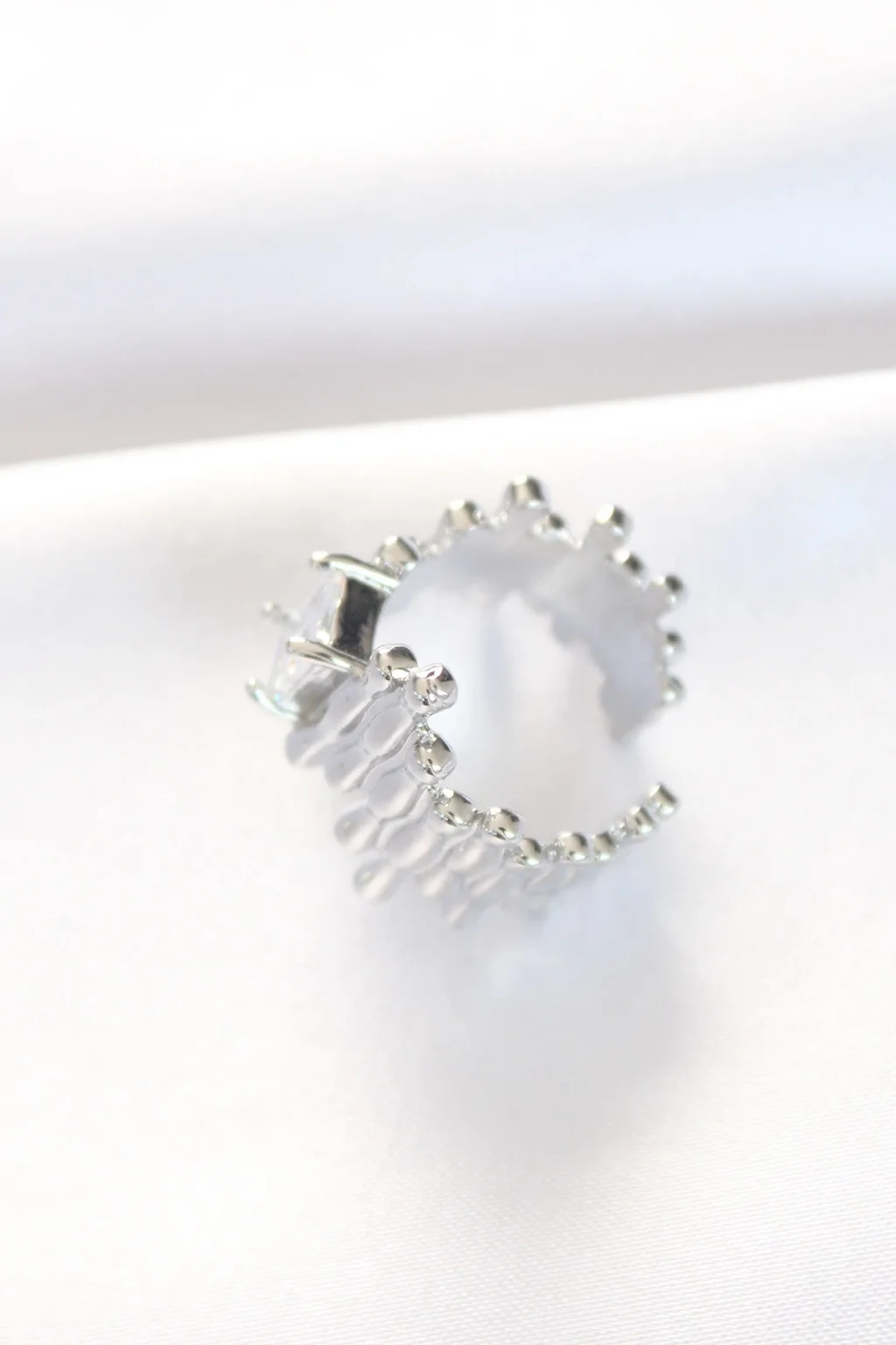 Silver Renk Tırtıklı Kalın Baget Taş Tasarım Ayarlanabilir Yüzük
