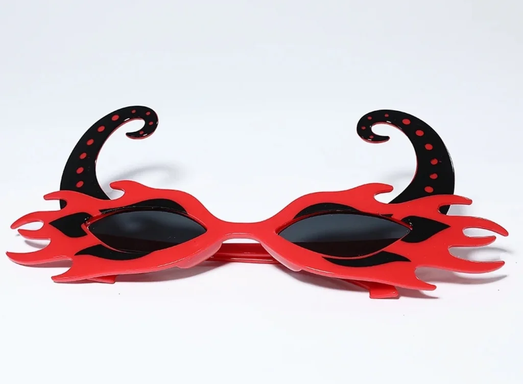 Siyah Boynuzlu Kırmızı Renk Alevli Parti Gözlüğü 21x10 Cm