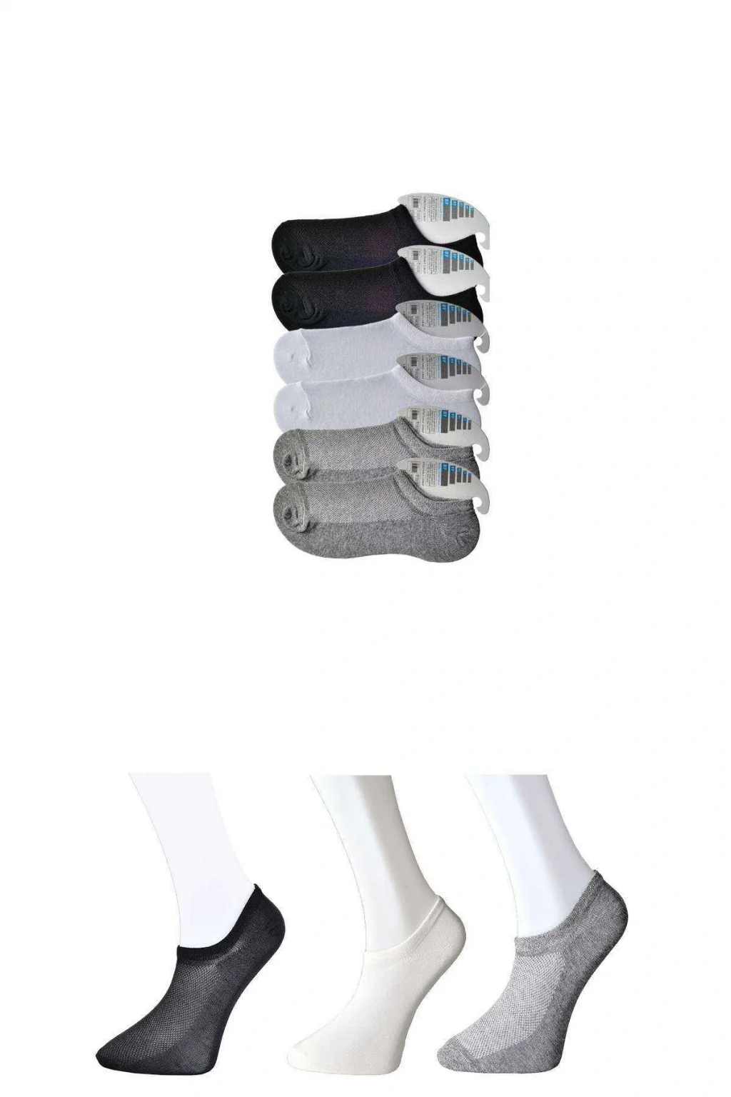 • Siyah Gri ve Beyaz Erkek Görünmez Çorap 6 çift