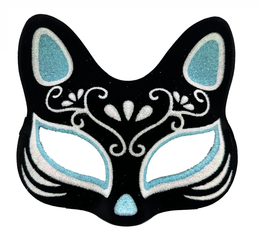 Siyah Renk Süet Kaplama Üzeri Gümüş Mavi Simli Kedi Maskesi 17x14 Cm