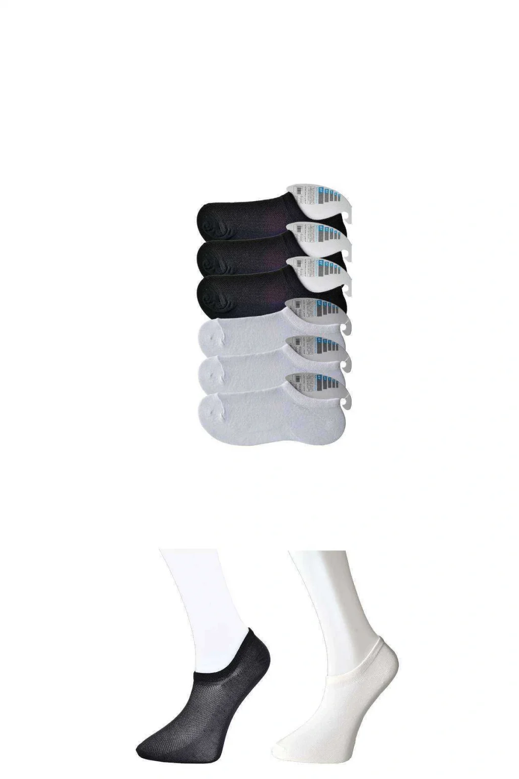 Siyah ve Beyaz Erkek Görünmez Çorap 6 çift