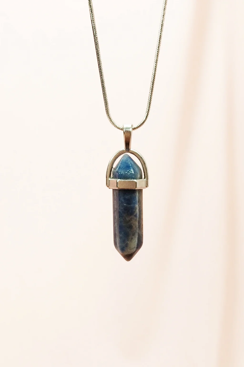| Sodalit Doğal Taşı Zincirli El Yapımı Tasarımlı Kolye Uç: 3,5 cm Zincir: 20 cm Kutulu |
