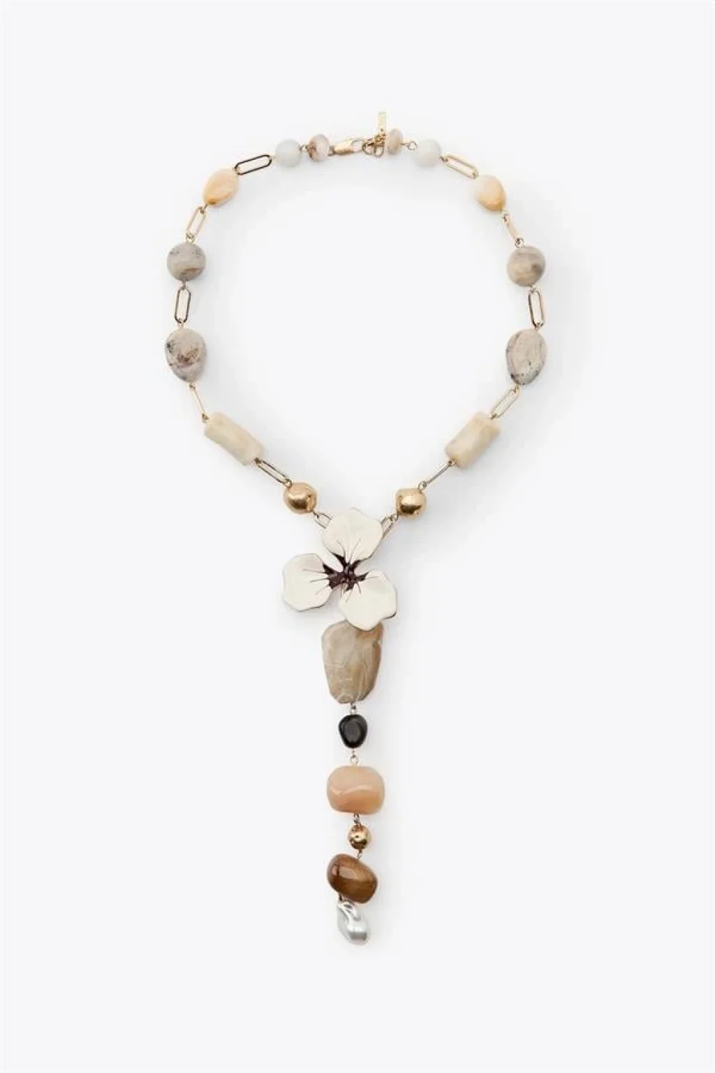 • Taşlı Çiçek Kolye - Altın