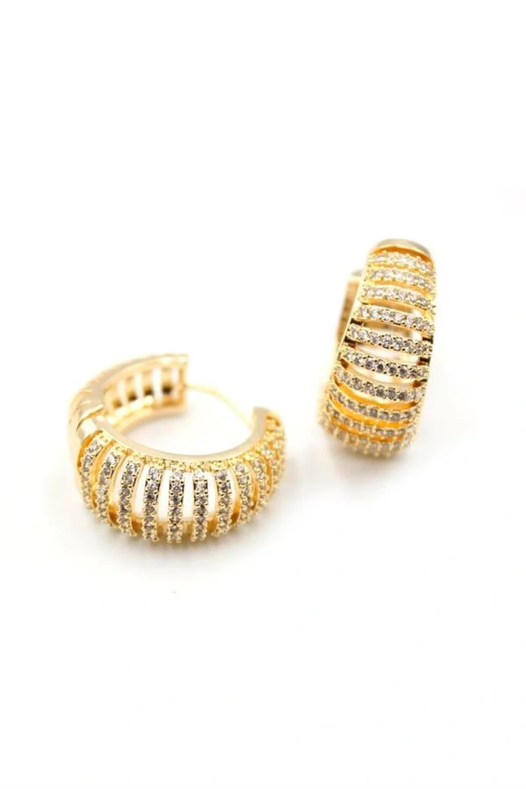 • Taşlı Halka Küpe - Altın