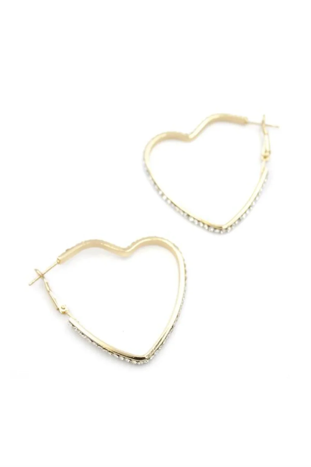 • Taşlı Kalp Halka Küpe - Altın