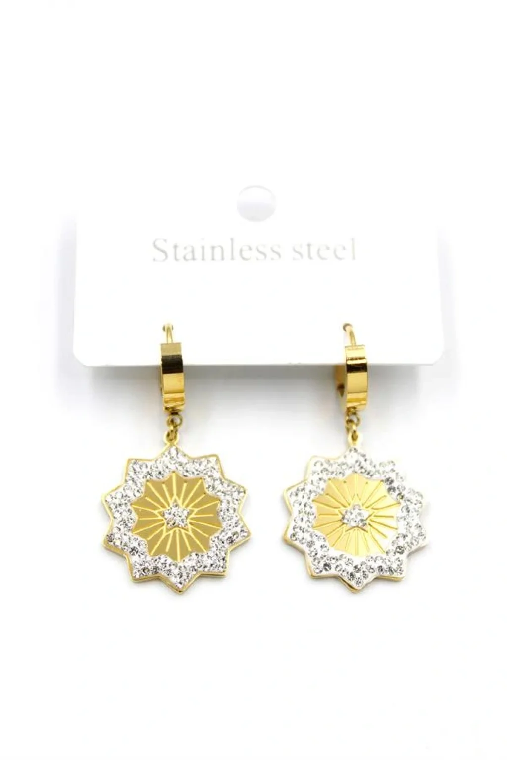 • Taşlı Yıldız Çelik Halka Küpe - Altın