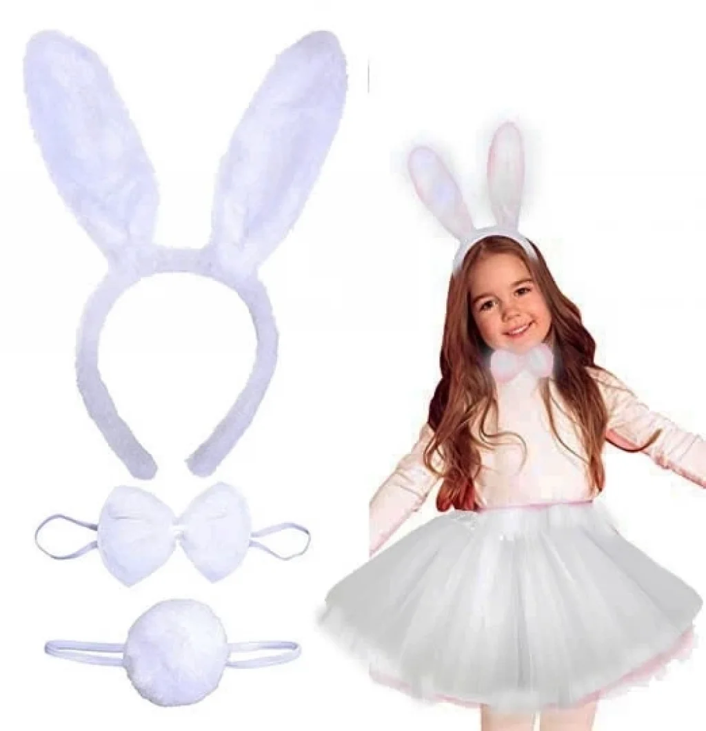 Tavşan Tacı Eteği Papyonu Ve Kuyruk Kostüm Seti Beyaz Renk Çocuk Boy