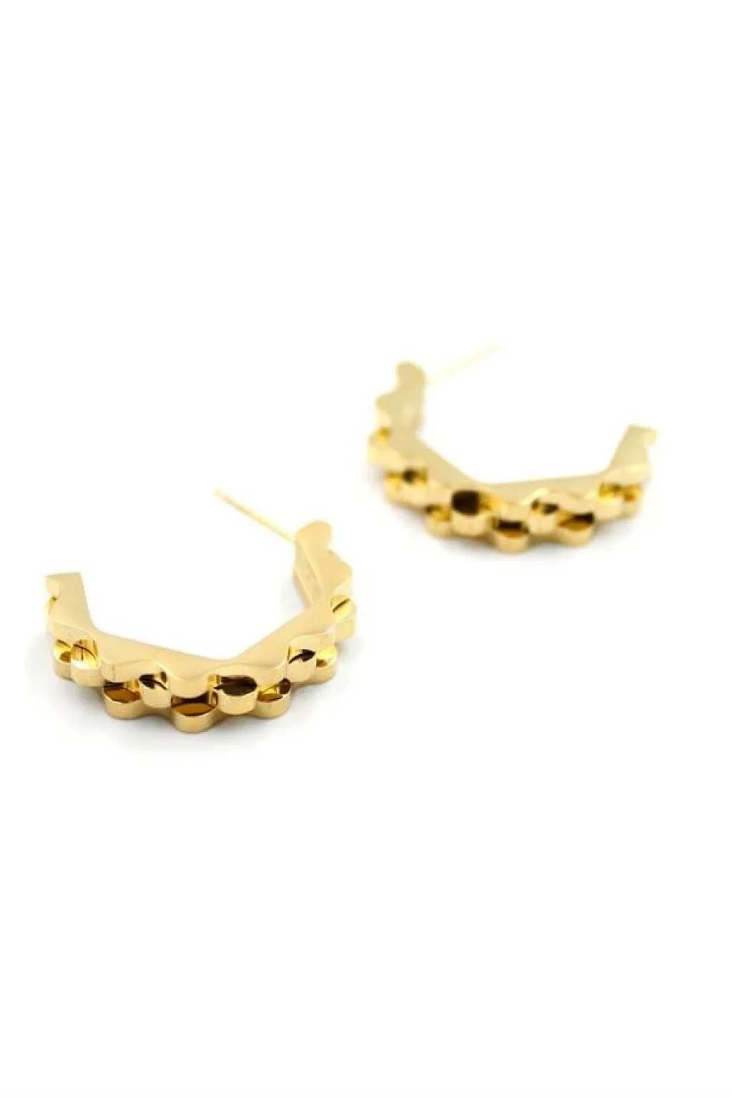 • Tırtıklı Beşgen Çelik Küpe - Altın