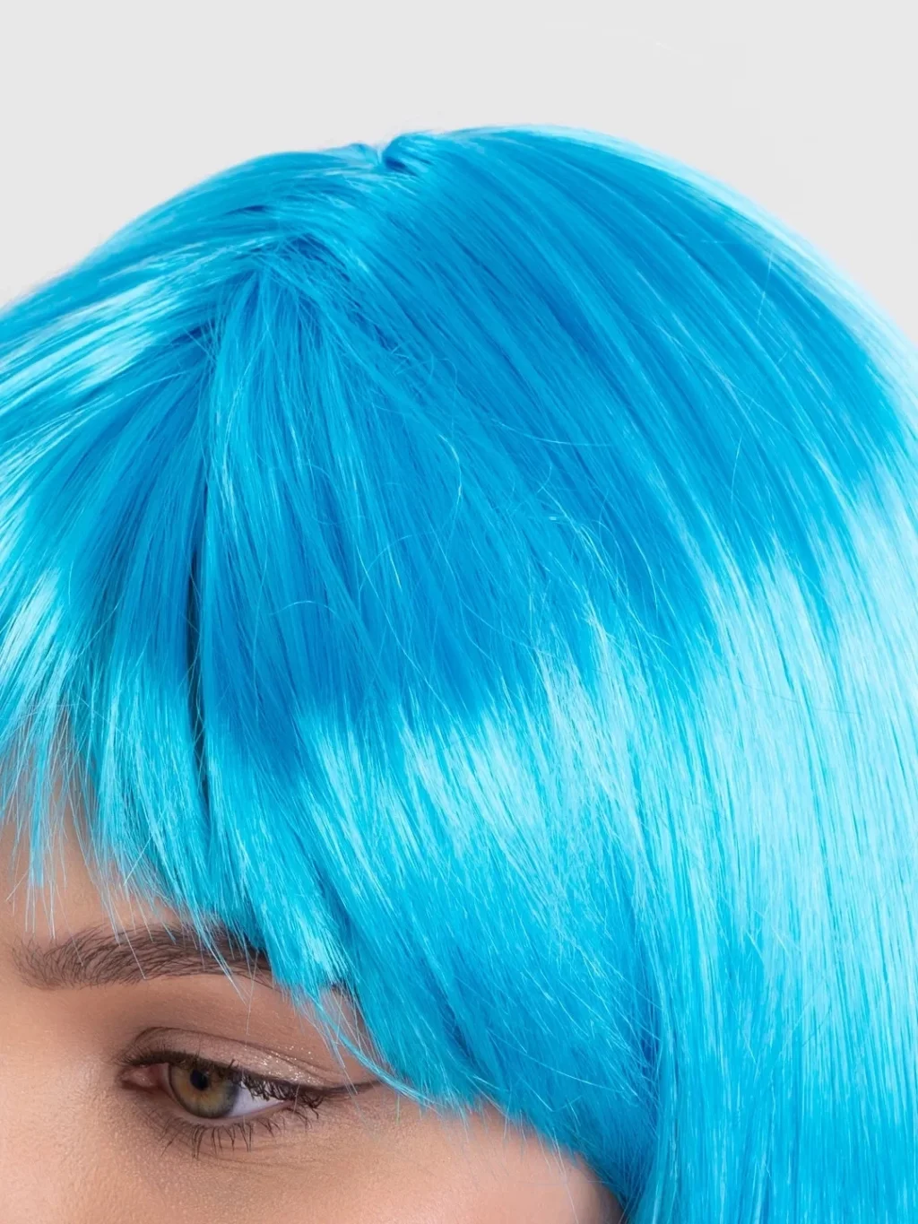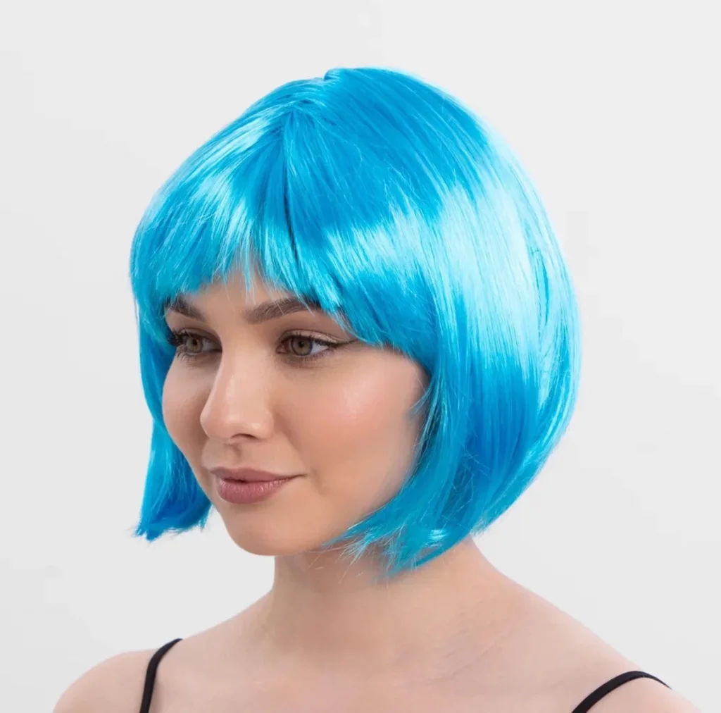 Turkuaz Açık Mavi Renk Düz Kesim Kısa Küt Parti Peruğu