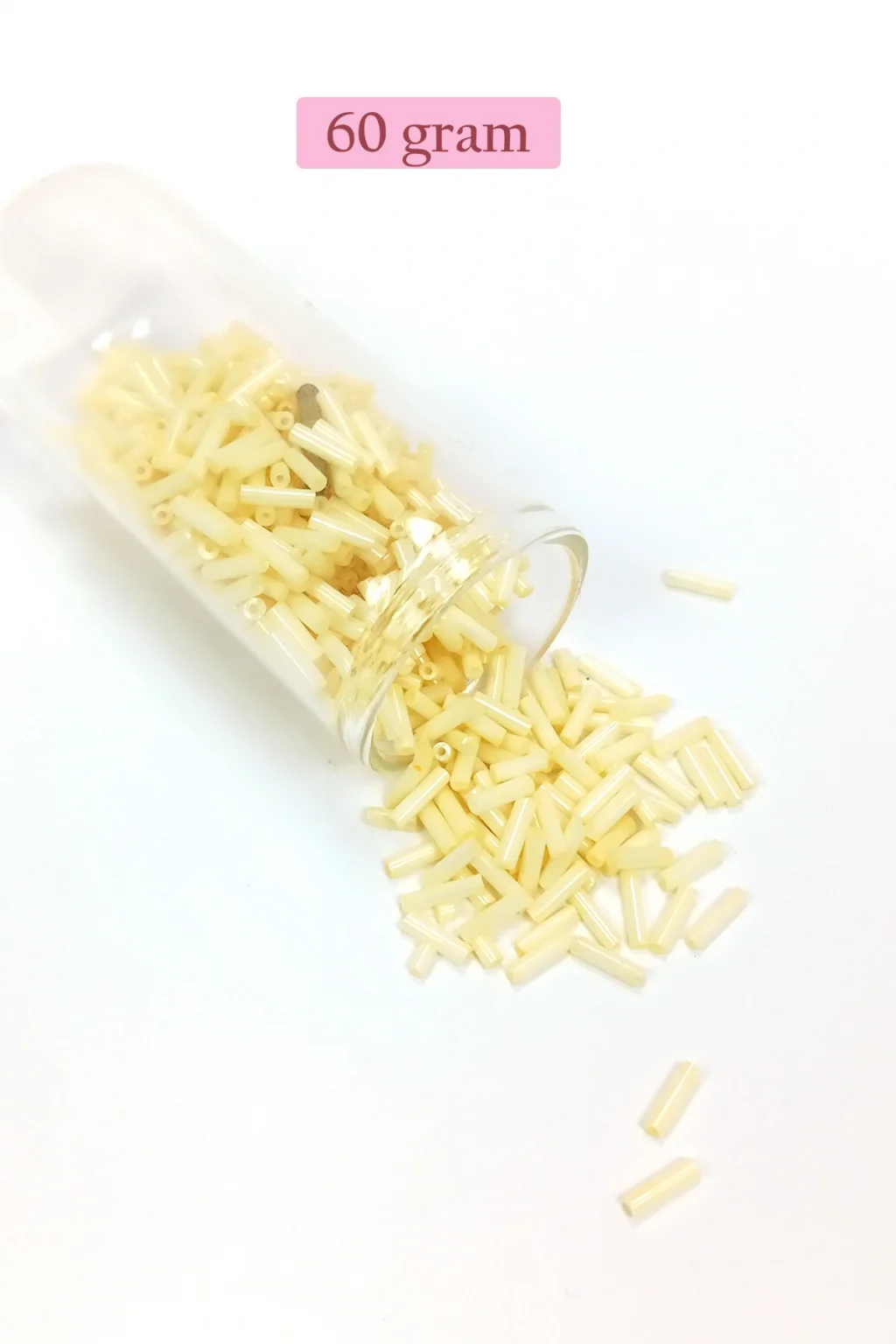 | Uzun Boru Kesme Boncuk Çap 2mm Uzunluk 10 mm - 60 Gram - Krem - BNC273 Uzun Boru Kesme boncuklar kolye, bileklik, küpe, aksesuar yapımında ve el işi oya ve örgülerde kullanılmaktadır. |