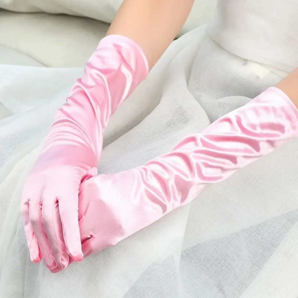 Uzun Boy Ekstra Parlak Saten Eldiven Pembe Renk