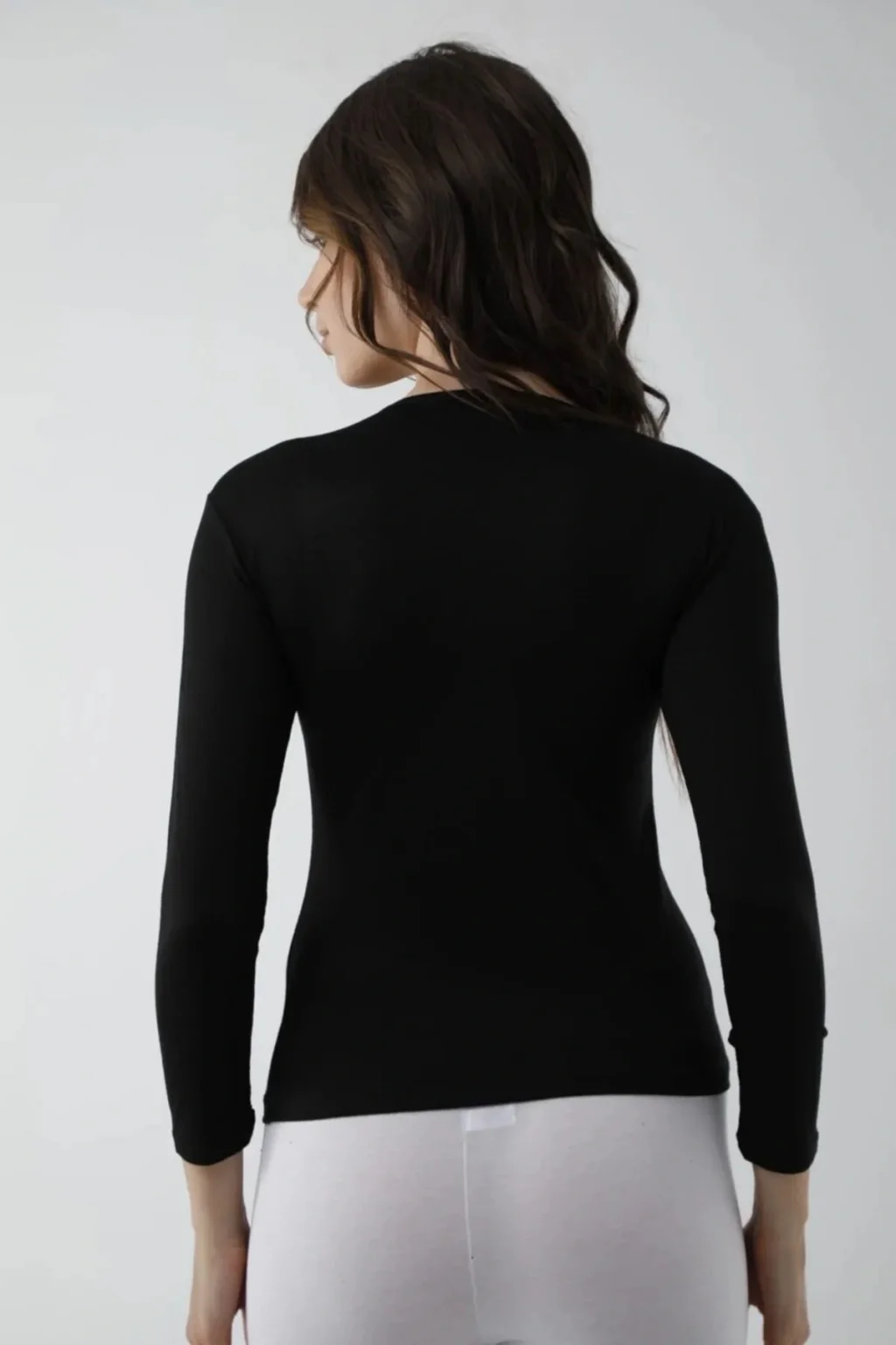 | Vivaldi Kadın Siyah Uzun Kol Bisiklet Yaka Body Likralı 352 % 92 Viskon %8 Elestan |