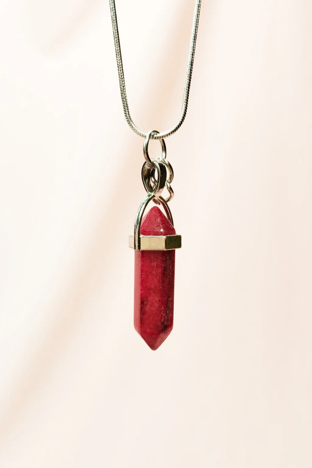 | Yakut Doğal Taşı Zincirli El Yapımı Tasarımlı Kolye Uç: 3,5 cm Zincir: 20 cm Kutulu |
