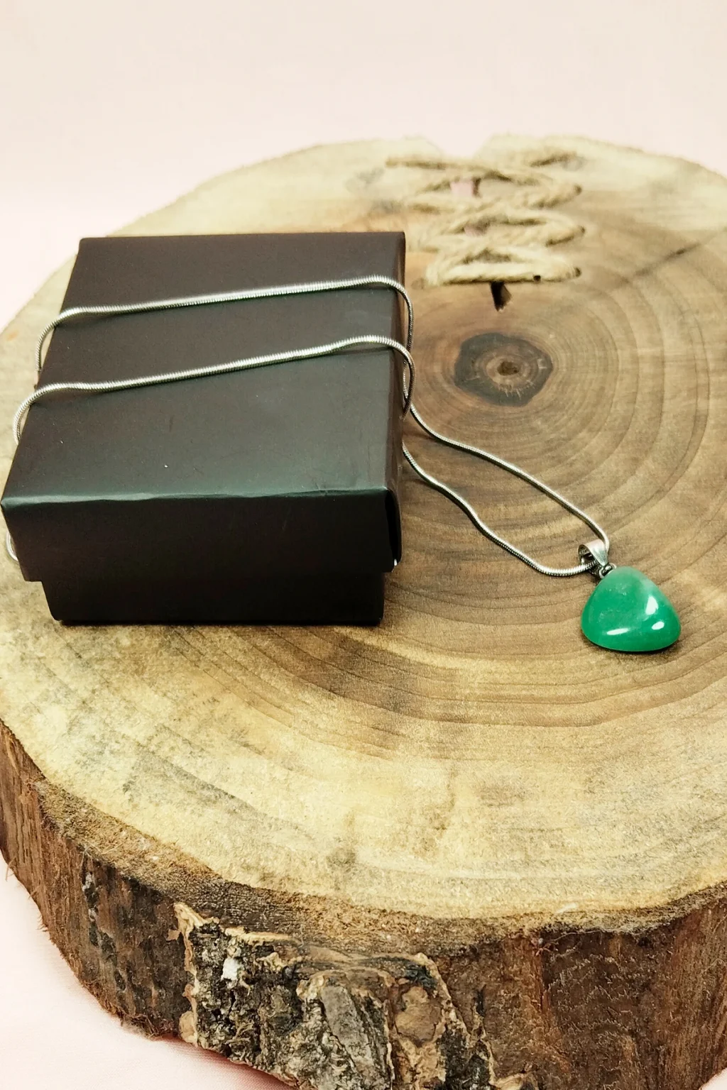 | Yeşim Taşı Doğal Taşı Zincirli El Yapımı Kolye Uç: 2 cm Zincir: 20 cm Kutulu |