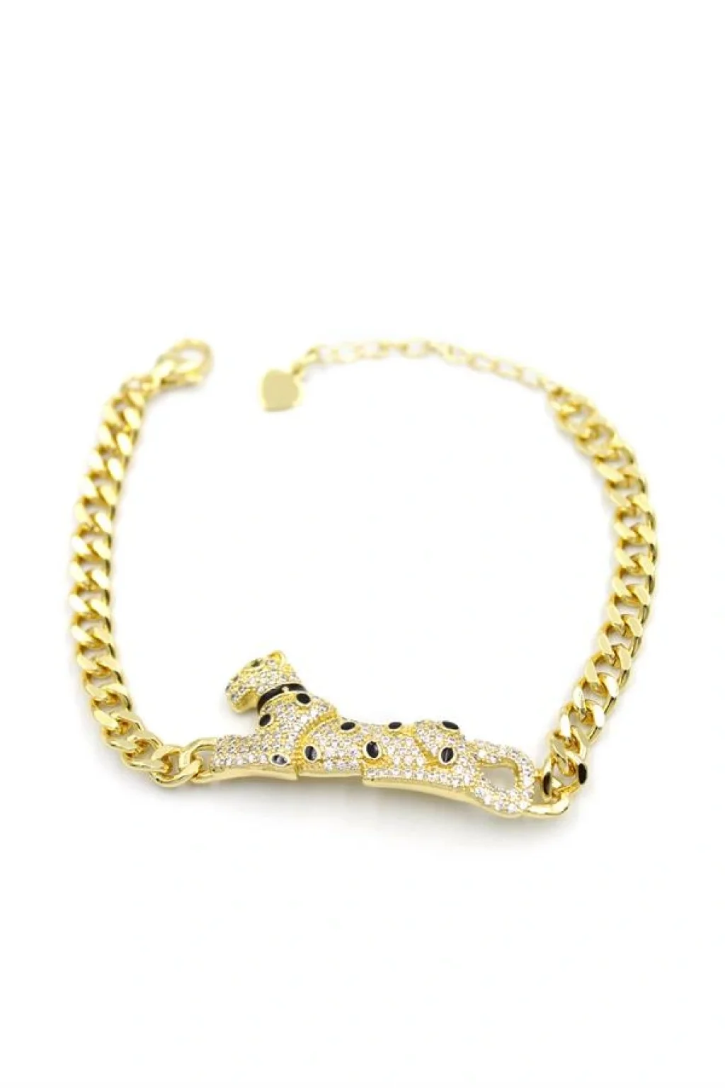 • Zirkon Taşlı Leopar Bileklik - Altın